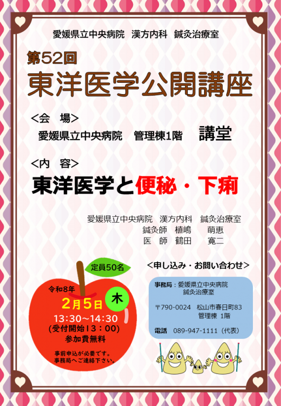 電話番号:089-947-1111(代表) 愛媛県立中央病院 鍼灸治療室