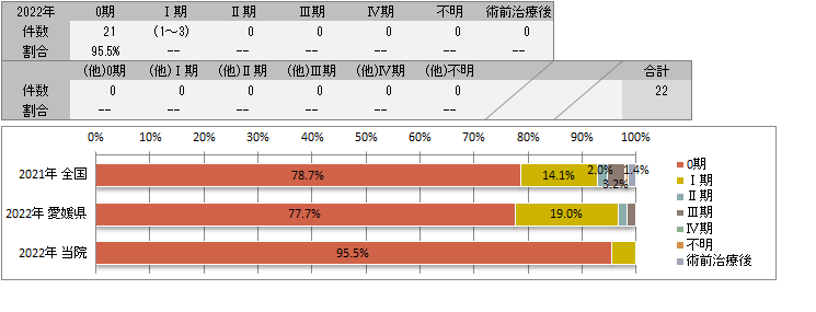 UICC TNM 総合ステージ別登録<症例区分20~31(自施設責任症例)、病期分類対象のみ>