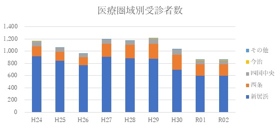 図は医療圏域別の受診患者数です。当院が新居浜圏域の二次医療機関でもあるため、受診患者数が多くなっています。